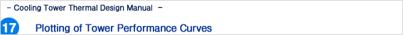 The performance curves could be prepared by the simple method and detail method, which shall be discussed later. The performance (= cold water temperature) prediction of cooling tower by means of the simple method is made by a few design parameters as well as water flow rate, L/G, KaV/L, range, cold water temp., wet bulb tem., and fan bhp, while the performance prediction by the detail method is requiring all the actual cooling tower dimensions, thermal rating conditions, and all the mechanical rating conditions. Example 17-1: Plot the performance curve by the method of constant fan pitch and simple method using the example 16-1. (Solution) 1) Performance Curve @100% of Design Water Flow Rate