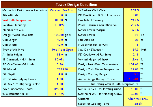 The file used here is same as one used for example 16-1. Example 17-2. Plot a set of performance curves presenting the cold water temperature vs wet bulb temperature by the constant fan pitch and the detail method using the same example 16-1. (Solution)