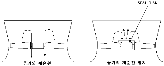 또는 SEAL DISC라 불리는 것을 HUB위에 두어 FAN에서의 공기 재 순환을
