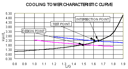 NTU값이 정해 지게 되는데 이때의 L/G에 대한 KaV/L 이 냉각탑의 특성 지점인
