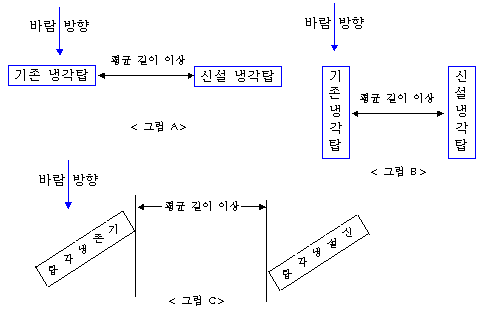 길이의 평균 길이 이상 떨어져 일렬로 설치한다. 이는 신규 냉각탑이