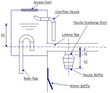 Lateral Pipe의 중심선에서 Flume의 수위까지의 수두로 Static Head라 한다. (나중에 설명을 하겠지만 Flume의 수위는 노즐의 오리피스 직경과 노즐 수에 의해 정해진다. |