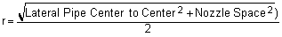 5) 노즐 거리 (Nozzle Distance): Water Coverage Chart를 이용하여 노즐의 하단에서 충진물 상부까지의 이격 거리를 찾는다. 먼저, 노즐 하나의 최소 분사 반경을 다음 식으로 부터 계산한다.