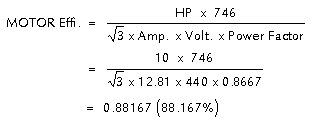 모터의 특성을 부하별로 나타낼 때 일반적으로 부하 총량의 1/4, 1/2, 3/4과 FULL LOAD에 대해서며, 이를 MOTOR DATA SHEET에 기재 하게 된다. 이 또한 틀린 것이 많으므로 다음의 요령에 의하여 확인하기 바란다. 앞서 이용한 POWER VECTOR로 부터 쉽게 계산을 할 수 있다.