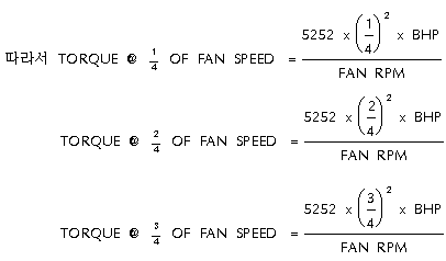 또한 FAN속도와 FAN의 TORQUE간의 관계는 속도의 자승이다.