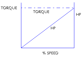 특성은 HP은 속도 변화의 3승, TORQUE는 속도 변화의